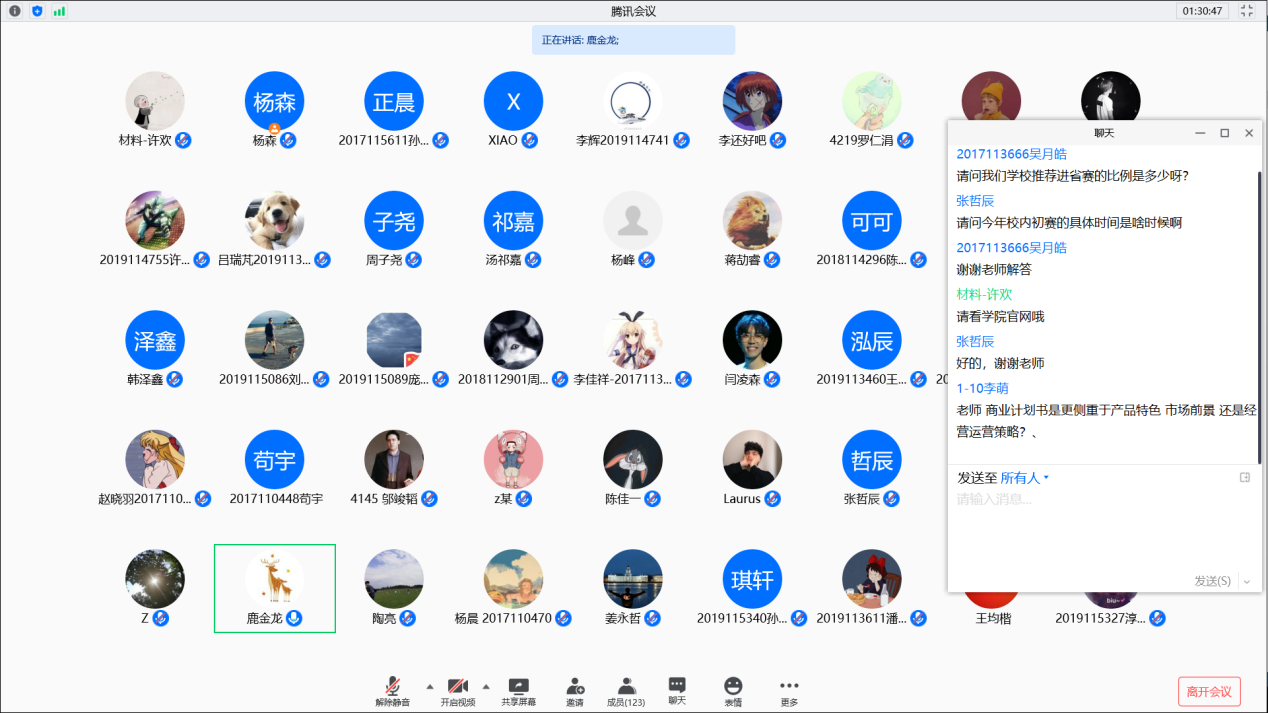 讲座最后,同学们在聊天窗口积极提问,鹿老师进行了耐心解答,相信同学们在这场干货满满的讲座中都获得了不少参赛的灵感与启发,本次讲座圆满结束。