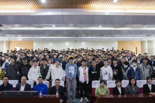 会议第三项议程是互动交流环节。同学们针对就业选择、科创项目、学术深造、发展前景等话题踊跃提问。材料学院本科教学负责人蒋小松,高教指委专家戴光泽,金材系骨干教师曹宝宝、胥永刚、黄兴民等专家学者与现场同学和线上家长坦诚交流,真诚地提供建议并发出邀请。老师们结合国际形势、国内发展需求,从国家重大需求出发,结合学校和专业培养特色,希望同学们树立远大目标、规划职业发展,内练本领、外练修养,选择好专业方向,一步一个脚印实现自己的价值,成为“顶天立地”的新工科人才。老师们将在专业学习、择业与就业、学术深造和职业发展等方面不遗余力地帮助同学们,为培养优秀人才服务。最后,现场师生合影留念,本次专业分流宣讲会在一片热烈的掌声中结束。