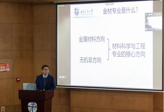随后,金材系主任樊小强老师分别从专业发展与人才培养目标、团队队伍、实验教学与毕业去向等四个方面介绍了专业基本情况。他强调:作为taptap188官网入口第一批次国家一流本科专业,我们始终以培养人才为宗旨,打造优质的教学平台和卓越的教师团队,为员工的未来发展保驾护航。针对同学和家长关注的毕业去向,樊老师告诉大家:材料研究已渗透人类生活的方方面面,只要肯在自己喜欢的专业深入地研究学习,未来就拥有无限的可能。