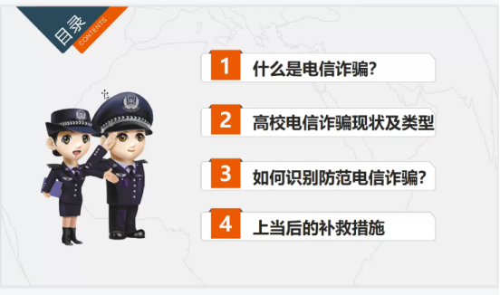 之后,讲述了识别电信诈骗的方法及有效预防电信诈骗的措施,警示大家对电信诈骗案件的重视,提高警觉性,在遭遇此类案件能保持镇定。