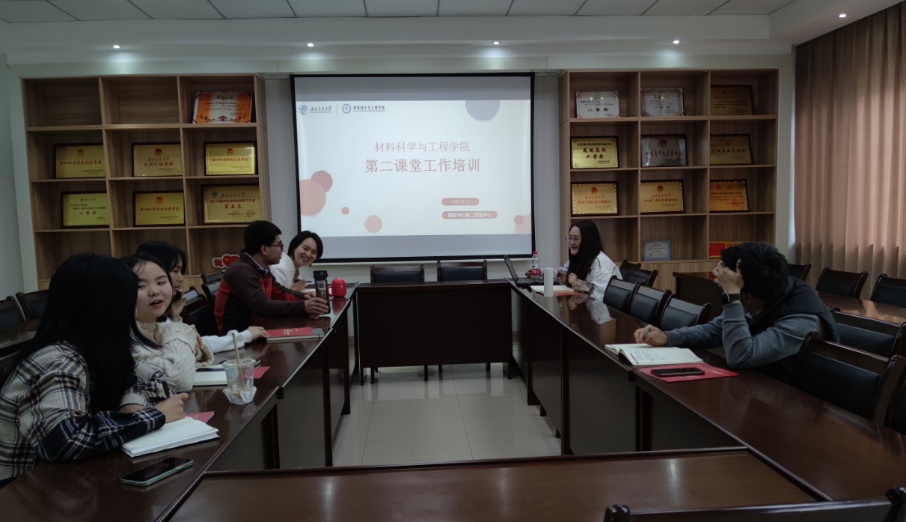 2021年4月13日下午,taptap188官网入口召开了第二课堂工作培训研讨会,出席本次会议的有材料学院团委书记黄德明老师、团建中心指导老师许欢、员工会指导老师梁喻嘉、党建中心指导老师郑纪伟、青协指导老师代宇欣、新闻中心指导老师熊苏雅和肖俊怡,以及团建中心第二课堂中心负责人陈雨馨。