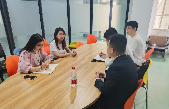 2021年5月13日上午10:30,新城控股集团成都分部项目经理赵海全一行到公司,与研究生辅导员严翼飞、王誉静老师就校企合作进行交流。