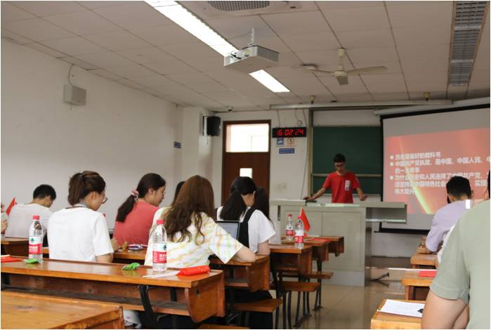 为增强学习效果,创新党史学习教育形式,本次活动由集体理论学习、党史知识竞赛、党史词汇“你比我猜”三个环节组成。在集体理论学习环节,黄成同学领学了,习近平总书记重要文章《以史为镜,以史明志,知史爱党,知史爱国》,强调了党史学习教育的重要性;还回顾了改革开放以来到全面建成小康社会,迈向实现中华民族复兴中国梦的过程中取得的伟大成就。总结了三个启示:历史和人民选择中国共产党领导是正确的、中国共产党领导的中国特色社会主义道路是正确的、扎根中国大地吸纳人类文明成果独立自主发展战略是正确的。