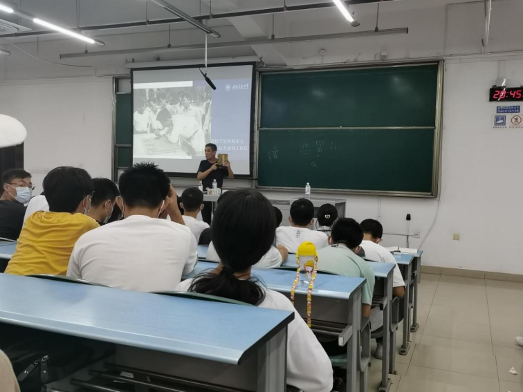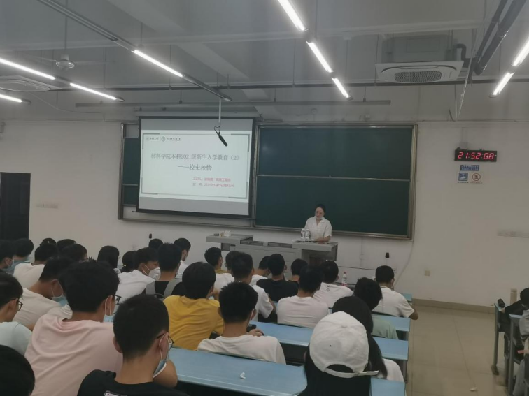 2021年10月14日19:00,材料学院2021级本科新生校史校情及爱国主义专题教育活动在犀浦校区X4352举办。本次新生入学教育活动由材料学院2021级辅导员许欢老师主持,辅导员董海霞老师和全体新生参与。本次活动邀请了公司著名校史专家梁锦唐老师主讲,旨在让新生们了解交大的百年历史,感受交大百年文化背后的底蕴。
