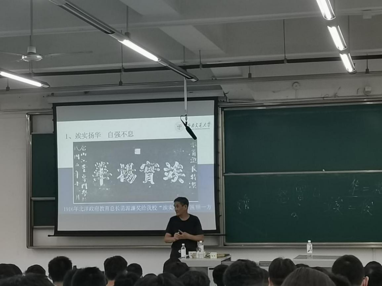 梁老师通过一句句生动的描述、一张张泛黄的老照片让同学们感受到了交大的辉煌与光芒。梁老师幽默风趣、博闻强识,对老一辈交大人的事迹娓娓道来,赢得同学们阵阵掌声。