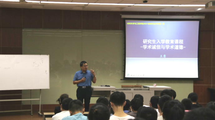 为全面提高公司研究生的安全意识,强调研究生学术诚信的重要性,2021年9月29日晚19时,材料学院2021级全体研究生于九里校区J4104教室开展学术诚信教育活动。本次会议由辅导员罗丹主持,材料学院王勇教授主讲。本次活动旨在加强研究生学术诚信教育,强化员工诚信意识,营造良好的学术氛围;并让同学们了解到学术研究的底线,必须严格坚守学术诚信,自觉抵制学术造假行为。