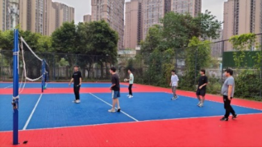 材料(金属)2020-03班组织了一场“运动乐翻天”排球比赛。同学们分成了两个小组,大家互相鼓励,团结作战,在集体运动中增进友谊,增强班级凝聚力。蒙蒙细雨丝毫没有影响同学们对运动的热情。