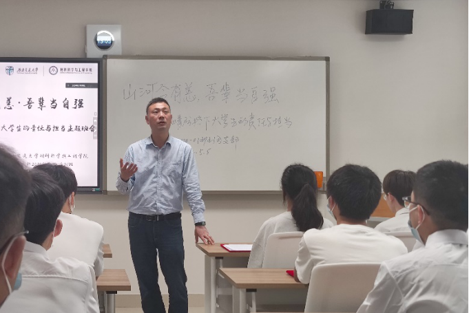 为深入学习贯彻习近平总书记关于疫情防控的重要指示精神,全面落实好学校和学院疫情防控工作要求,2022年5月5日13:20,材料学院高分子2020-01班全体同学在犀浦校区X2122开展“山河今有恙·吾辈当自强——疫情防控下老员工的责任与担当”主题班会。公司党委副书记章春军、本科2020级辅导员郑纪伟和学校班级联合会员工代表张莹同学应邀参加,班长庞贺阳同学主持。
