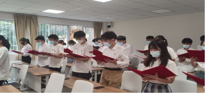 班会第四个环节——“执语言之灯 驱疫情之暗”。同学们集体朗诵《青春的模样》。生逢其时,重任在肩,作为新青年,作为民族精神的赓续者,我们必将高擎伟大旗帜,在新时代乘风破浪,奋勇前行!