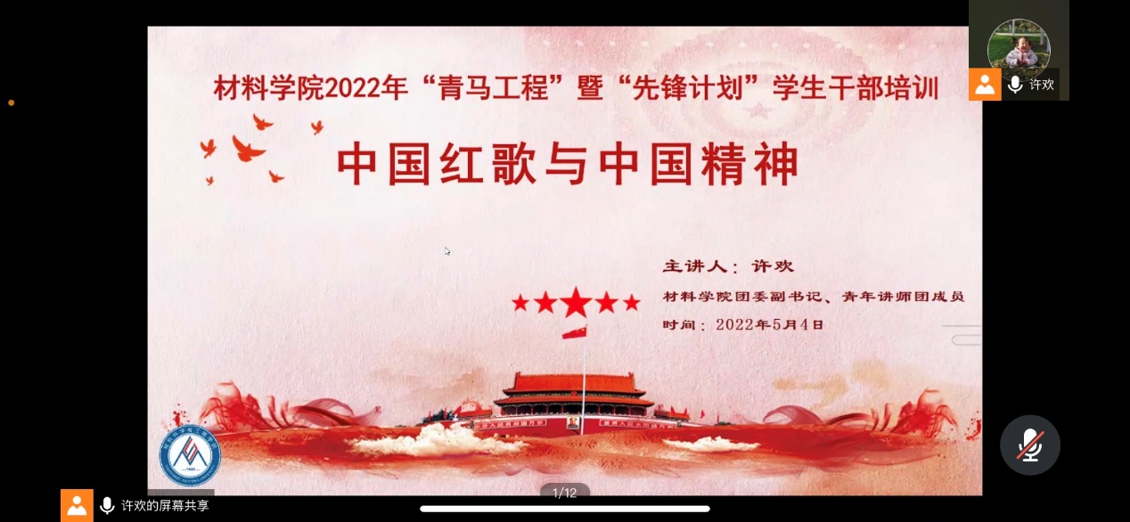 弘扬革命传统,赓续中国精神。材料学院团委副书记、青年讲师团成员许欢为参训学员带来“中国红歌与中国精神”专题报告,带领同学们共同赏析五四和抗战时期具有代表性的音乐作品,从美育教育和艺术思政的视角切入,讲解作品艺术特点、技巧运用、主题思想和历史背景的紧密联系,还原英雄事迹,挖掘精神内涵,让同学们在视听盛宴中感悟伟大精神,强化使命担当。