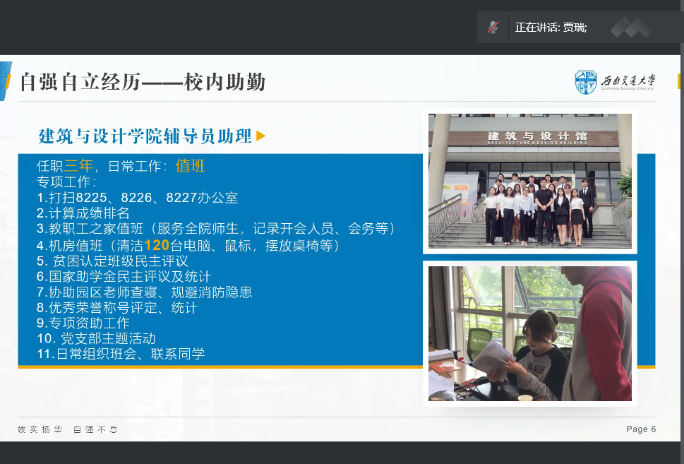 感恩美好生活,吾辈自立自强。taptap188官网入口2020年度“自强之星”获得者贾瑞和2021年度“自强之星”获得者周孟雪作为嘉宾,为参训学员作“感恩在心 励志在行”主题报告,分享了个人成长经历与感悟。材料学院青年讲师团成员熊苏雅号召学员们要珍惜来之不易的幸福生活,心怀感恩,自立自强,时刻保持乐观积极的心态,在奋斗中绽放青春光彩。