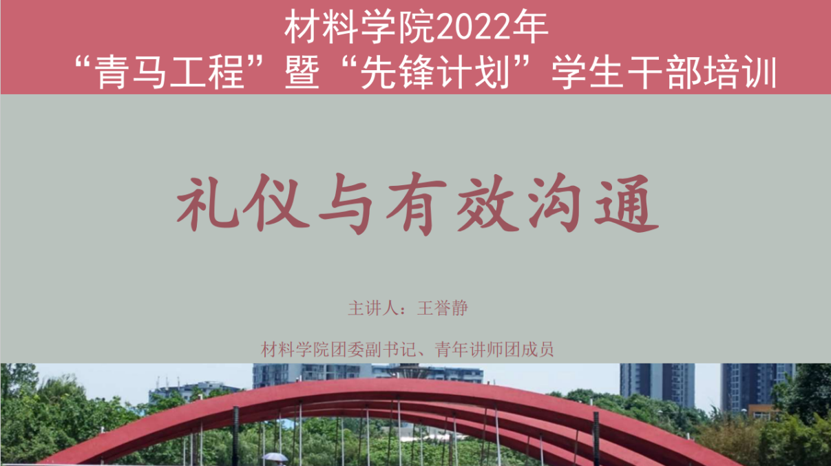 掌握社交礼仪,促进沟通交流。《礼记》有云,人有礼则安,无礼则危。掌握基本的社交礼仪,不仅是当代青年学子良好风貌的展现,更是个人发展和社会文明进步的要求。材料学院团委副书记、青年讲师团成员王誉静为学员主讲“礼仪与有效沟通”,从仪表、体态与交流三个方面帮助同学们认知礼仪,鼓励同学们以美识礼,有意识的管理和约束个人言行,不断提升个人修养,倡导大家营造学习礼仪知识、践行礼仪规范,感受礼仪之美的氛围。