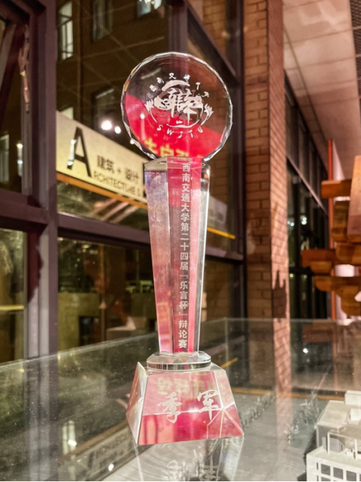 决赛现场,主办方为材料学院辩论队颁发了季军奖杯。奖杯折射出的每一道光,都是沁入材料学院辩论队30多位成员心里的暖流,是对那些踔厉奋发、披星戴月的时光最好的抚慰。