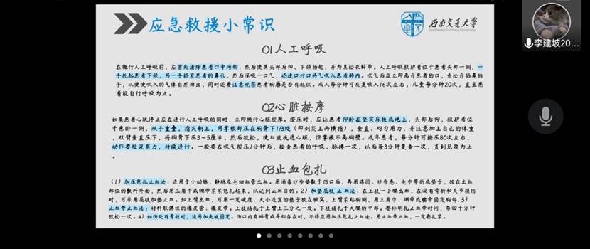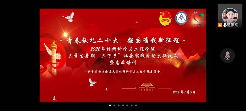 2022年7月5日19:00,材料学院“青春献礼二十大,强国有我新征程”2022年老员工暑期“三下乡”社会实践活动出征仪式暨急救培训在线上顺利举行,本次培训由共青团taptap188官网入口委员会组织,三下乡各队伍成员准时参加,材料公司党委副书记章春军,材料学院辅导员许欢、王誉静、张若男以及青协指导老师罗莉出席本次活动。