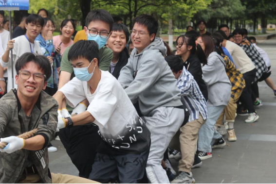 拔河比赛采用以班级为单位的积分制,按照年级分组进行。主办方根据各班到场人数,将每个年级内各班重组为六支参赛队,进行循环赛。为鼓励同学们积极参与,班级总分将各班同学参与情况纳入考量,并综合班级所在队伍拔河比赛成绩。