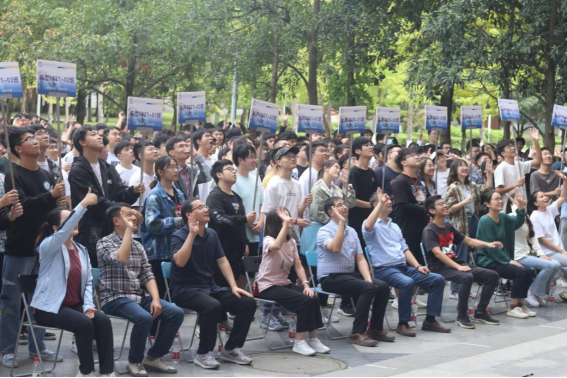 章春军代表朱旻昊经理和陈勇书记向同学们致以节日的问候。他指出,学院对两个年级联合举办的国庆嘉年华活动非常支持,希望同学们积极参与活动,在参与中促进集体融入,收获体验和成长,培养集体精神。
