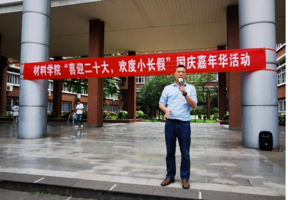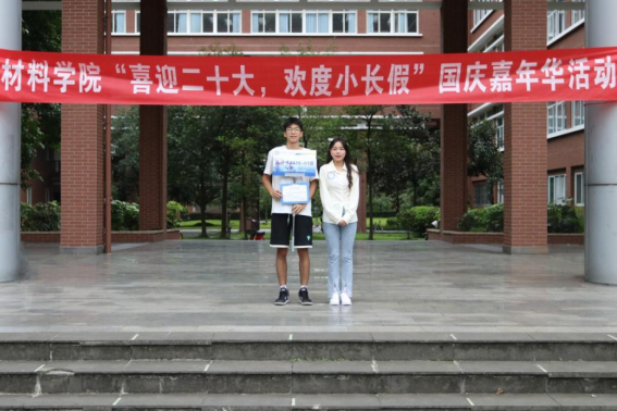 又是一个“非必要不离蓉”的小长假,如何让同学们享受一波国庆七天乐成为了摆在材料学院员工工作组老师们眼前的头等大事。特别是在刚刚经历一轮疫情的折磨后,原定的返校计划被推迟到国庆前,同学们的学习节奏被打乱,半个多月的封闭管理更是让大家少有消遣。释放激情,收获愉悦成为同学们当前的共同需求。在“给自己身心放松,送家人温馨问候,与班级一路同行,为学业积蓄力量,把防疫牢记心间”的假期倡议下,为庆祝中华人民共和国成立73周年,丰富同学们的国庆假期生活,增强集体凝聚力和荣誉感,材料学院本科2020级和2021级于10月4日下午联合开展了“喜迎二十大 欢度小长假”国庆嘉年华活动。