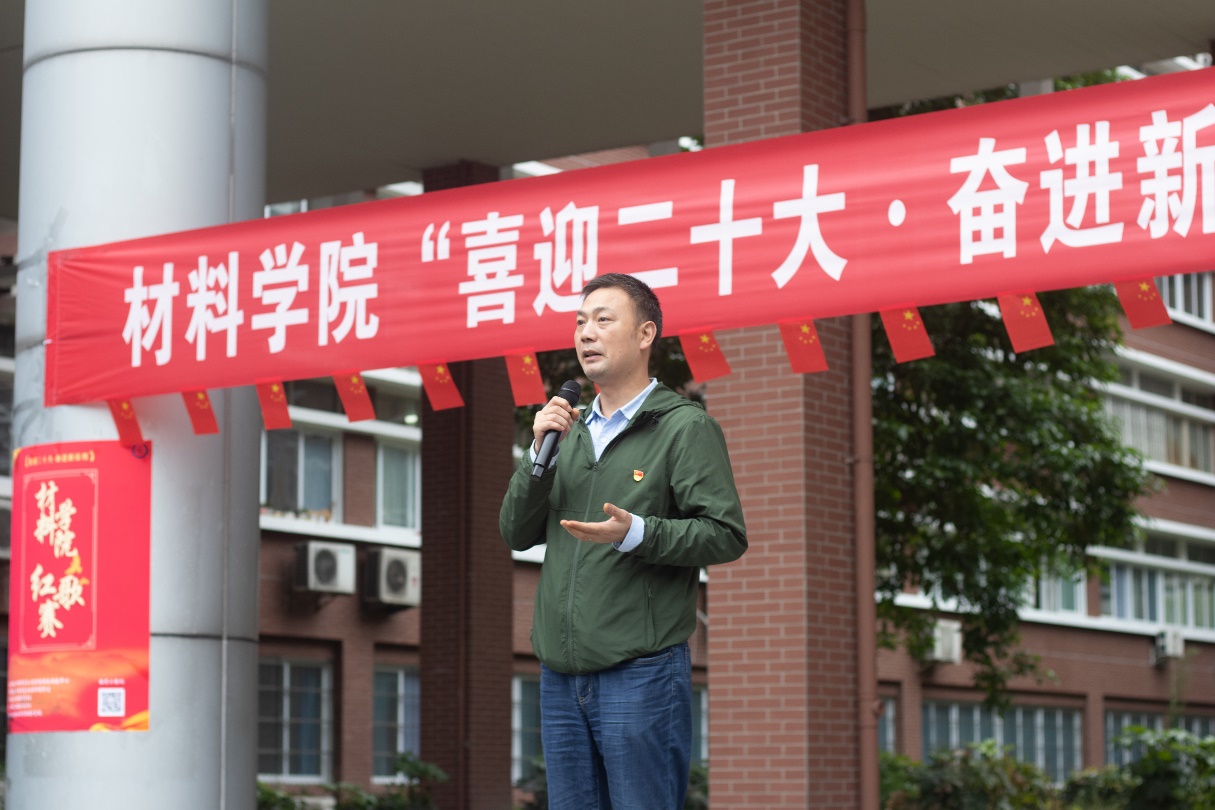 在致辞环节,章春军副书记表示,今天这个活动是材料学院落实“4+X”美育要求的一个主导活动,一是具备了“信仰之美”,让每一个同学更加的爱党、爱国、爱校,展示出新时代老员工的风采;二是表现出了“艺术之美”,是同学们增强艺术素养的实践方式;三是演绎了“生活之美”,表达了同学们热爱交大幸福的生活环境,始终保持着饱满的进取精神。他鼓励同学们积极探索“美的力量”,每个人都可以是美的发现者和产生者,号召同学们积极参加学院组织的艺术实践活动,随时定格心中的美。同时,他代表朱旻昊经理和陈勇书记向同学们致以节日的问候,感谢学工组各位老师、团建中心以及相关的员工干部,为此付出和努力,预祝参赛同学能够取得好的成绩。