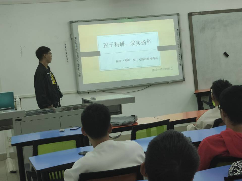 为贯彻落实习近平总书记重要讲话精神,大力弘扬科学家求真务实、报国为民、无私奉献的高尚品格,深度了解员工陈能宽院士的伟大贡献,感悟国防精神。2022年10月4日,在班委的组织下,材料2022-01班在x2123b开展了关于学习陈能宽院士精神的主题班会,全班同学积极参与。