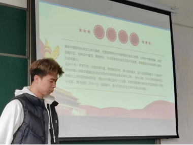 为活跃班会气氛,促进同学们全面发展,组织委员姜峰俊同学带领全班同学一起欣赏学习了《国际歌》、《黄河大合唱》两首经典红色歌曲。他对两首歌曲的内容、创作背景及历史影响进行了介绍,并带领全体同学唱响两首红歌,通过红歌演唱的形式学习中国精神。
