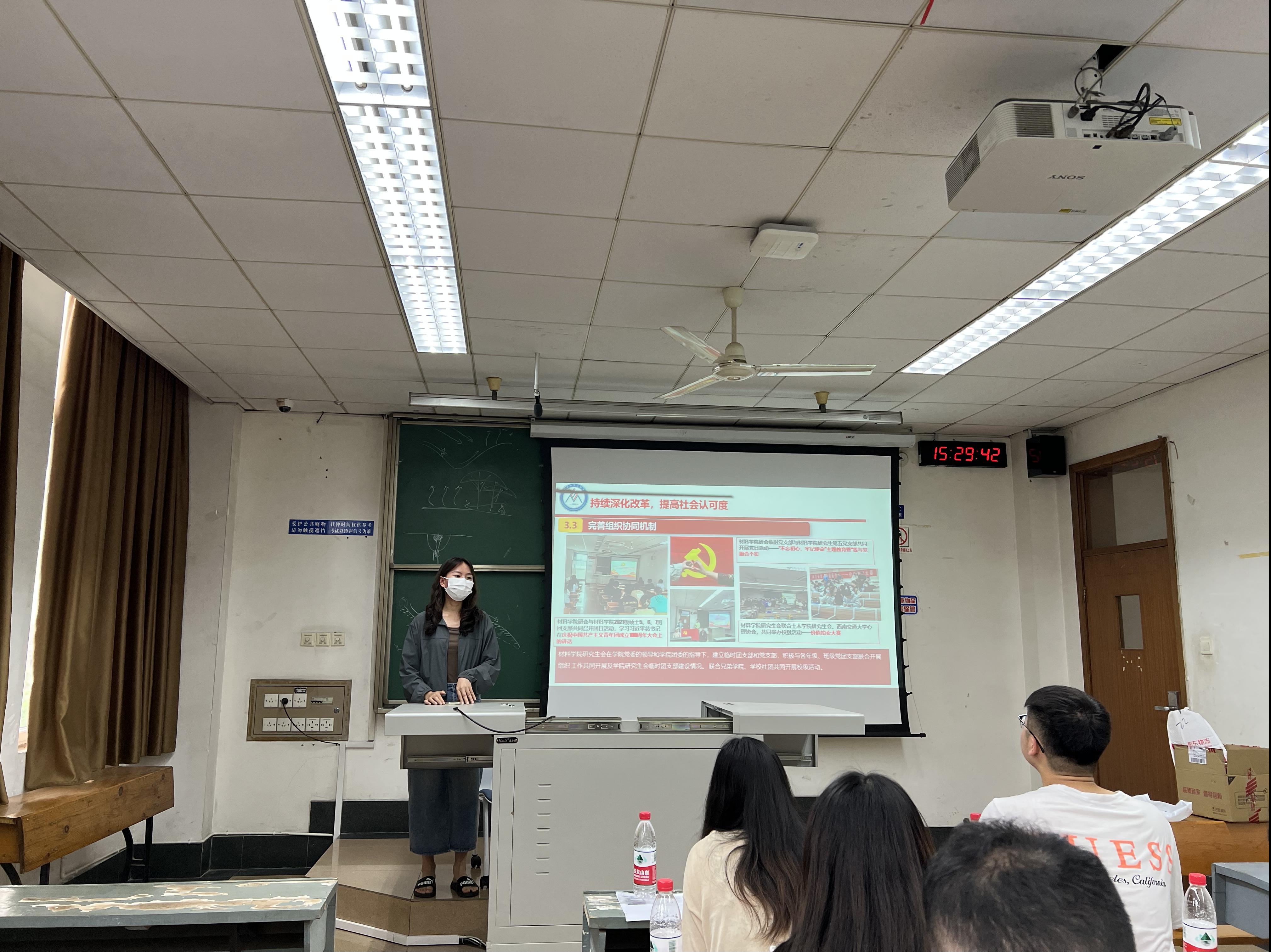紧接着,研会主席对材料学院研究生会2022-2023年度工作进行回顾,指出在过往一年中材料学院研究生会的工作在公司党委的正确领导下,在学院老师的悉心指导下,在广大同学的热情参与和支持下,研究生会始终奉行“全心全意为同学服务”的宗旨,结合学院特点,逐步落实各项工作任务,取得了良好的成绩。随后进行研会各部门负责人述职报告会。会上,各部门负责人围绕年度工作述说了各自部门在过去一年中的工作情况,就各自部门取得的成绩进行了总结,同时对工作中暴露的问题进行了深刻分析。最后表达了对材料研究生会和指导老师的感谢及对下一届研会成员的殷切期望。