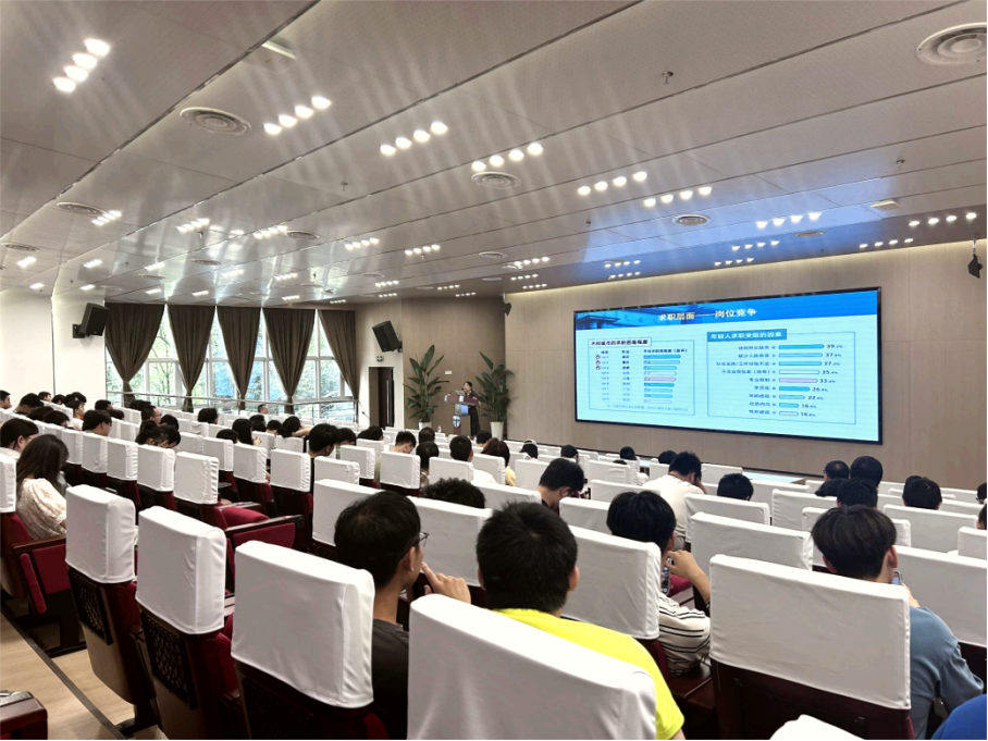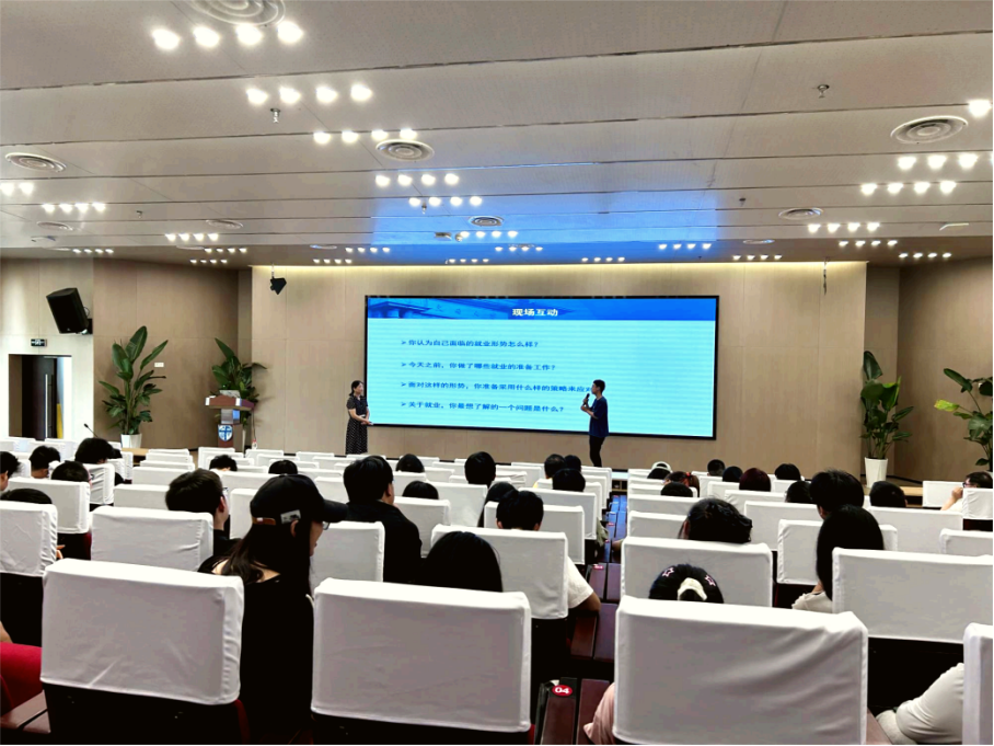 为学习贯彻习近平总书记关于就业工作的重要指示精神,进一步落实教育部就业育人工作要求,切实做好2024届毕业生就业工作,帮助同学们树立积极的就业观,全面了解当前就业政策和形势,2023年6月21日下午,材料学院在犀浦校区图书馆二号报告厅举行2024届本科生就业动员大会。学校人才招聘处黄春蓉副处长应邀为2024届本科生作“就业选择与思考”专题辅导。召开本次就业动员大会,是材料学院扎实推进主题教育,坚持将提高毕业生就业质量作为“我为师生办实事”工作重点的有力举措之一。材料公司党委副书记熊钰、2024届全体本科生及辅导员郑纪伟参加。