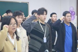 紧接着大会进行授牌仪式。授予工作牌是对加入员工会的成员的身份认可。所有人心中都充满着骄傲,带上会牌,就代表了一份肩负的责任与信任。它将会激励着部员们认真工作,全心全意为同学服务。授牌结束后,员工会全体成员进行了庄严的宣誓。大家举起右拳,嗓音洪亮,宣读誓词,明确作为员工会成员的责任和要求,铿锵的宣誓声表达着他们以身作则、敢为人先、行为示范的决心。