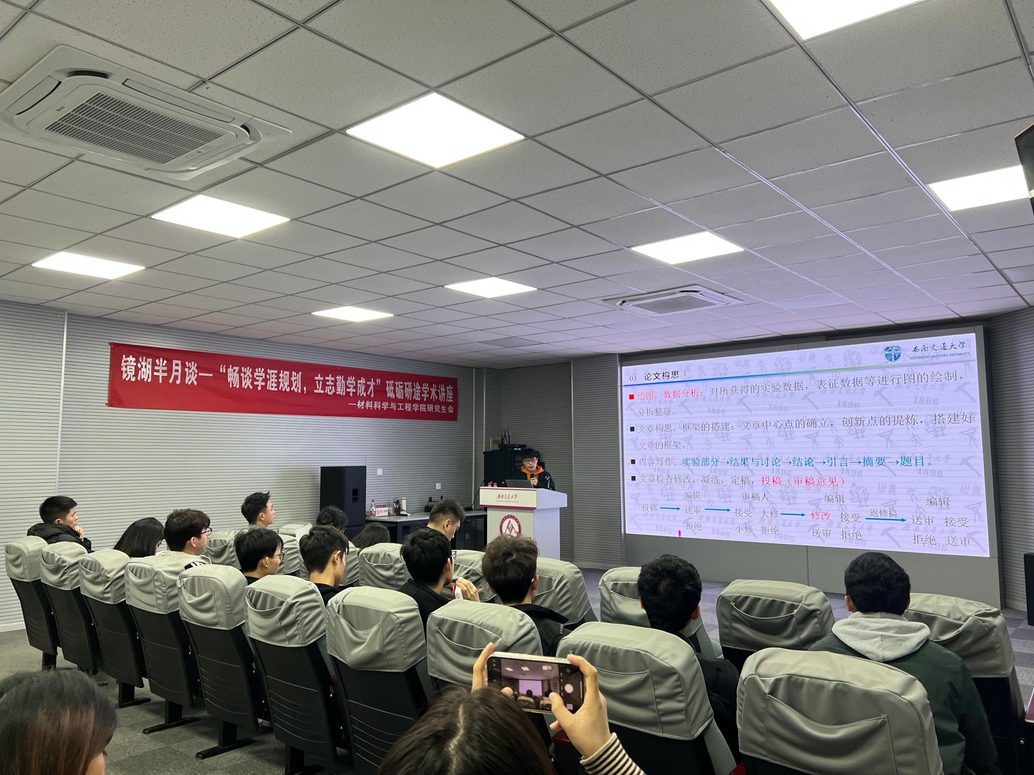 为培养研究生的学术道德和规范,了解学术道德的基本原则和规范,提高研究生的学术素养,增强研究生的团队合作能力,taptap188官网入口研究生会与研究生第十二党支部举办“砥砺研途”---畅谈学涯规划、立志勤学成才讲座。本次讲座邀请学院两名优秀研究生,从员工角度出发,由浅入深,从学术规范、科研工具、科研兴趣、压力应对等方面为广大新生讲述自己的漫漫“砥砺研途”,发挥朋辈力量,鼓励新生养成追求真理、潜心治学的科研精神。本次讲座由学院青年讲师团成员、辅导员邓文婷主持。