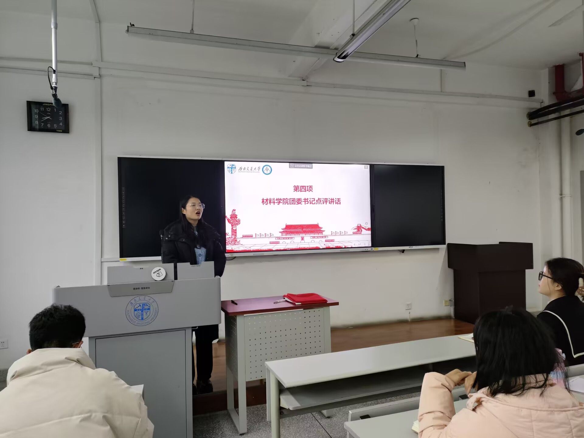 材料学院团委书记王誉静进行总结点评,本次组织生活会准备充分,开得严谨、规范、有序,达到了预期效果。她指出,本学期该团支部工作扎实开展,切实起到了团结青年、引领青年、服务青年的作用。她希望广大团员青年时刻牢记团员身份,保持光荣感和使命感,要以做新时代的好青年为目标,以实现中华民族伟大复兴为己任,更加自觉按照党指引的方向健康成长,更加积极的使命担当和创造精神投身中国式现代化建设,把青春和力量奉献给伟大而光荣的新时代。