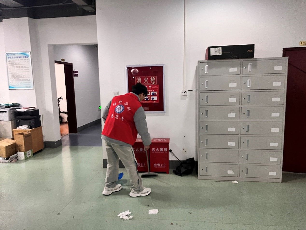 组织材料学院研究生志愿者深入学院进行学雷锋日志愿服务活动,前往学院所在教学楼对自行车棚停放杂乱的共享单车进行了治理,随后对三号教学楼二楼员工工位公共区域进行了打扫,给同学们营造一个干净的学习环境。