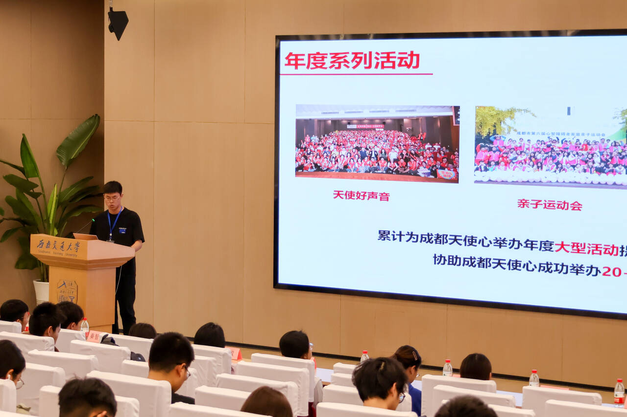 材料学院青协副会长李建坡向大家讲述了材料青协和成都天使心的不解之缘。在十余年的合作中,材料青协始终以爱相拥、以诚相待,累计参与成都天使心各类志愿服务活动60余次、提供志愿者超500人次、服务爱奇儿家庭2000余个、志愿服务时长超5000小时,以实际行动积极搭建互助平台、关爱身心障碍群体,彼此接纳,彼此治愈。