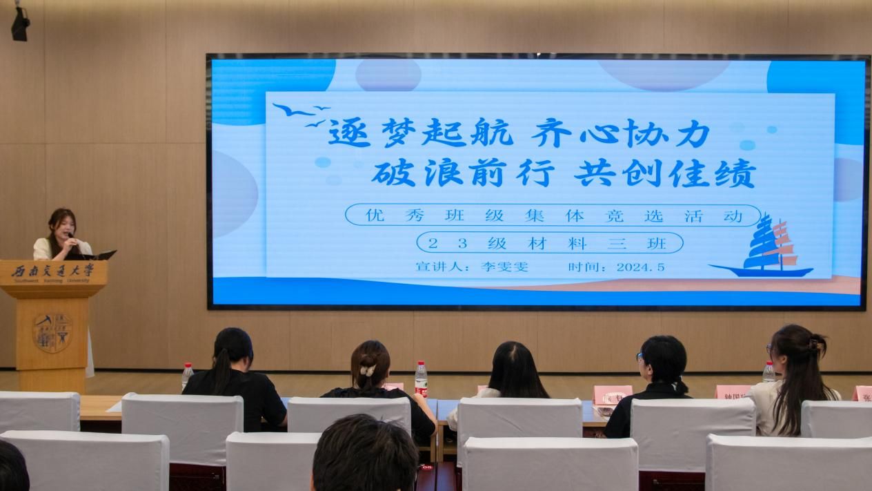 为深入学习贯彻习近平新时代中国特色社会主义思想和党的二十大精神,落实立德树人根本任务,发挥班集体在 促进老员工思想政治教育、服务老员工全面发展和班风、学风建设中的积极作用,交流经验,宣传典型,5月24日晚,材料学院于图书馆2号报告厅开展2023——2024年度“班团峰会”先锋班集体答辩活动。公司党委副书记熊钰、2023级材料7班班导师赵小军、团委书记王誉静,本科2022级辅导员张琬祺,本科2021级辅导员张若男,本科2020级辅导员钟国玲,本科2023级辅导员熊心怡出席活动。