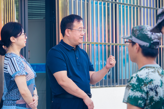旭日东升,清风拂面,热血沸腾的24级新生军训正如火如荼地进行着。在这个仲夏与盛秋相遇的时节,身着迷彩服的热血少年们在操场上训练有素,目光如炬。9月9日上午,材料公司党委书记张占军、党委副书记熊钰、24级新生辅导员罗丹和罗馨梦,前往军训现场慰问军训教官和参训员工,并详细了解军训开展情况。