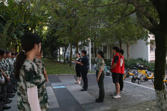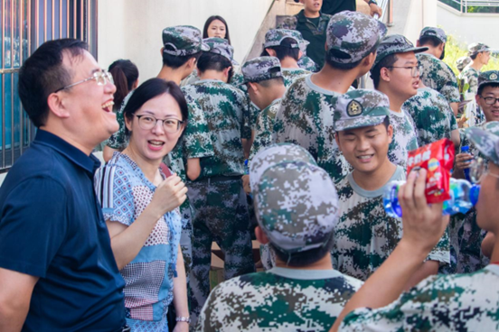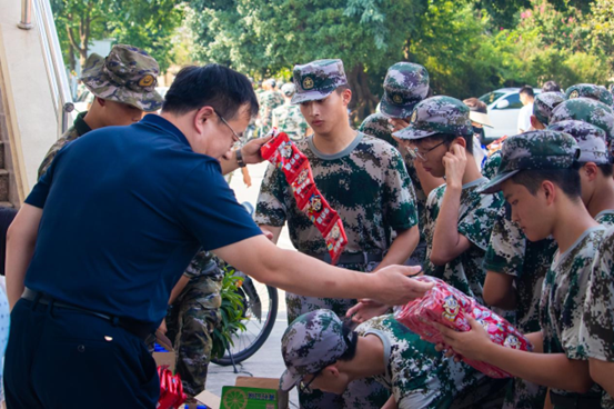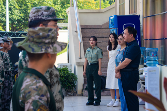 张书记和熊书记以及两位辅导员为教官和参训带来了慰问物资,表达了学院的关怀和支持,肯定了同学们的纪律意识和吃苦耐劳的精神。同时向同学们强调了军训的重要意义,军训不仅是老员工涯中一次重要的国防教育活动,更是磨砺意志、锤炼品格、增强集体荣誉感和责任感的重要契机。希望同学们能够珍惜这次难得的机会,将军训中培养的优秀品质带到日后的学习和生活中去。张书记、熊书记和同学们深入交流,询问新生们的军训感受,聊的十分愉快。