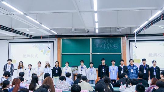 欢笑过后,进入授牌仪式环节,各个部门的部长为新干事佩戴工作牌。这代表着新干事们正式扛起肩上的责任,将传递志愿服务精神的任务与使命挂在胸前,与志同道合伙伴们开启一段难忘的志愿服务时光,携手踏上属于我们的爱心接力之旅。