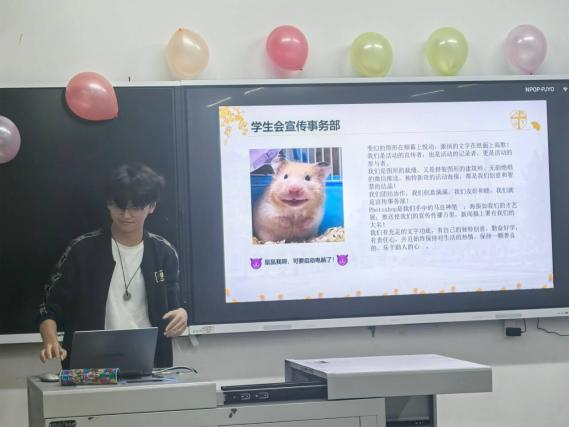 随后,部长分别从部门职能、成员介绍、近期工作汇报及工作总结等方面进行了部门风采展示。各部门表示,将齐心协力,不断推进工作,致力于营造丰富的校园文化和良好的学习氛围,维护员工权益,为同学们创造更好的生活和学习环境。
