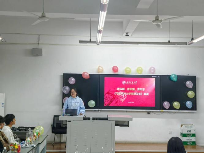 首先是张琬褀老师以“青年观,青年情,青年志”为主题,领学《习近平与老员工朋友们》。张琬祺向同学们介绍了该书的内容概况,并向同学们介绍其中饱含着习近平总书记薪火相传的“青年观”、念兹在兹的“青年情”、厚望重托的“青年志”,为做好新时代新征程党的青年工作提供了重要遵循。提醒同学们牢记党和人民的殷切期待,争做有理想、敢担当、能吃苦、肯奋斗的新时代好青年,成为让党放心、爱国奉献、担当民族复兴重任的时代新人。