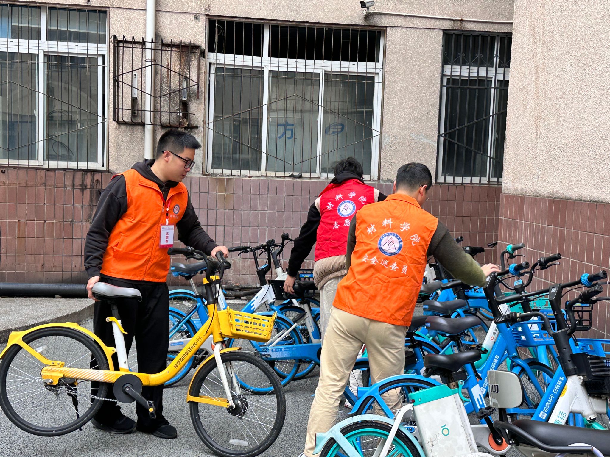 在整治过程中,志愿者们充分发挥不怕苦、不怕累的精神,齐心协力,分工明确。他们首先对乱停乱放的自行车、电动车等非机动车辆进行逐一清理,将车辆推至指定停车区域。在摆放过程中,志愿者们格外细心,按照车型、停放方向等进行整齐排列,确保每一辆车都停放得规范有序。同时,对于长期占用车棚的 “僵尸” 车辆,志愿者们在详细登记车辆信息后,按照学校相关规定进行了妥善处理。此外,他们还对车棚及周边乱堆乱放的杂物进行了全面清理,使整个区域焕然一新。