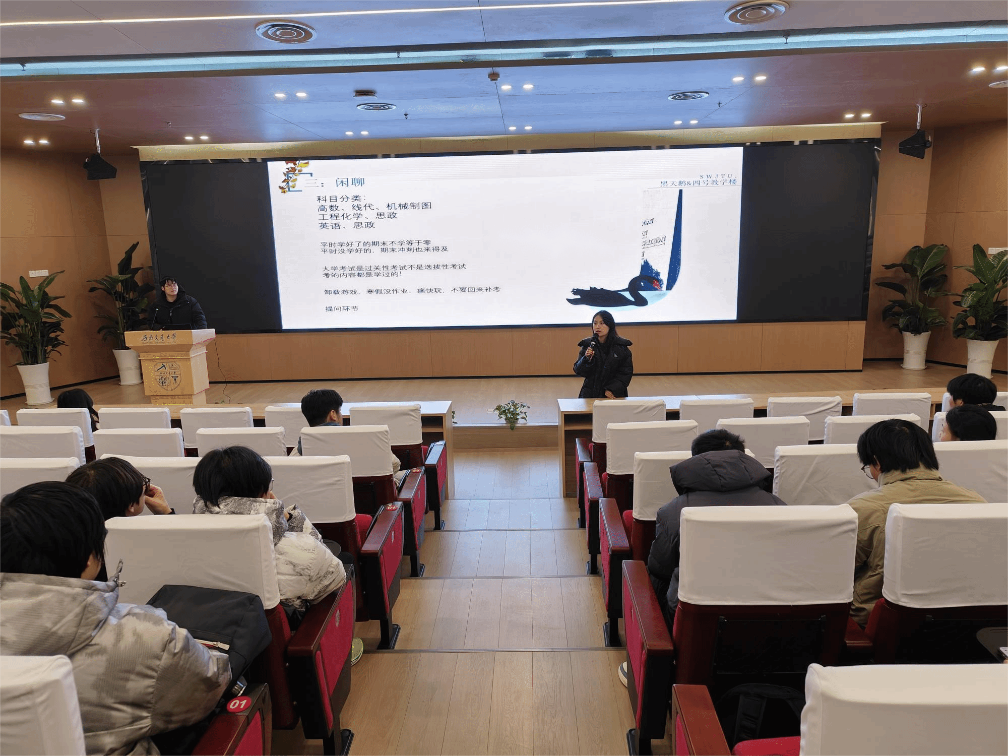 2024年12月18日,在2024级同学们紧张备战期末考试之际,一场干货满满的期末备考经验分享会在2024级年级大会上热烈召开。本次分享会特邀2021级优秀学长刘懋霖,为学弟学妹们传授高效备考秘籍,缓解考试压力。