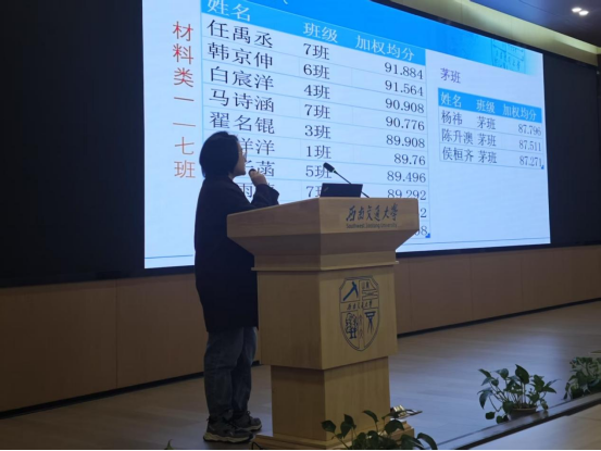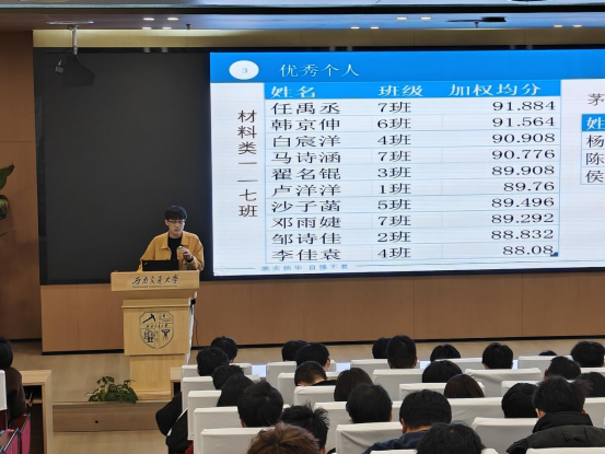 会议伊始,年级辅导员许欢老师和李瑞英老师向同学们做了自我介绍。接着,李瑞英老师对2024-2025学年秋季学期的智育成绩进行了全面总结。李老师用数据分析了各班均分和各班优秀人数,特别表扬了绩点排名前10的优秀员工,并邀请材料3班的翟名锟同学分享学习经验。翟名锟提到:“合理规划时间、主动与任课老师沟通是提高效率的关键。”同时,许欢老师也指出部分员工存在偏科和挂科现象,提醒大家重视基础课程,积极参与课后答疑和学科互助小组。
