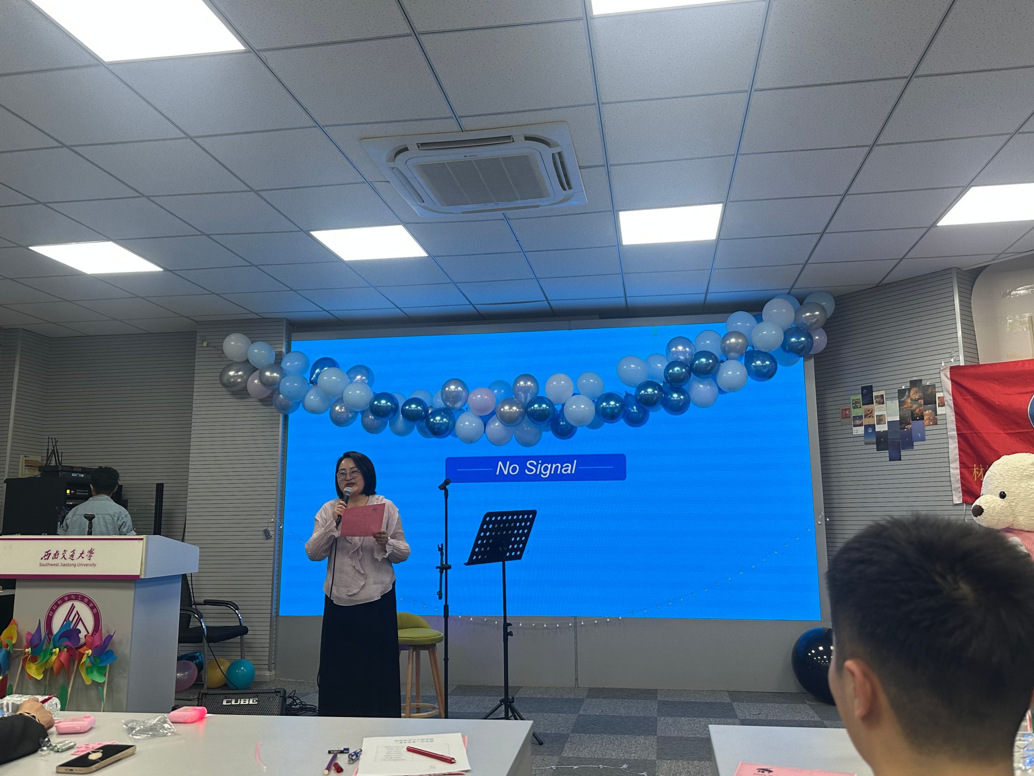 活动尾声,辅导员许欢对本次“音乐之夜”进行点评。她高度肯定了研会的组织工作,称赞活动“既展现了员工们的多才多艺,也为校园文化生活增添了亮色”。同时,她鼓励同学们在专注科研之余,积极发展兴趣爱好,保持身心全面发展。王誉静与张宝开两位辅导员也表达了对员工们的支持,希望未来能有更多此类活动,促进师生交流与情感共鸣。