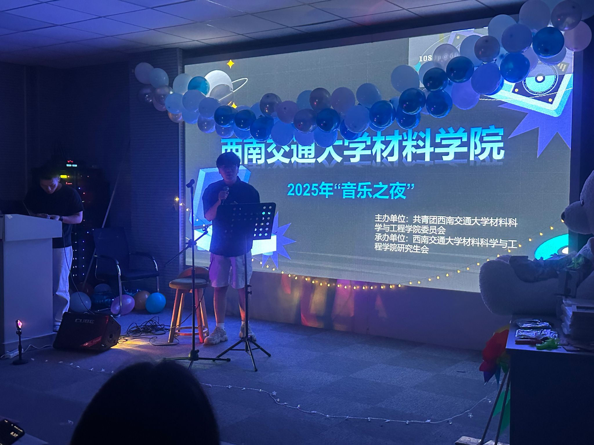 2025年4月24日晚,由材料学院研究生会承办的“音乐之夜”活动在第三教学楼3324教室精彩上演。本次活动吸引了众多师生参与,辅导员王誉静、许欢、张宝开与同学们共同感受音乐的魅力。