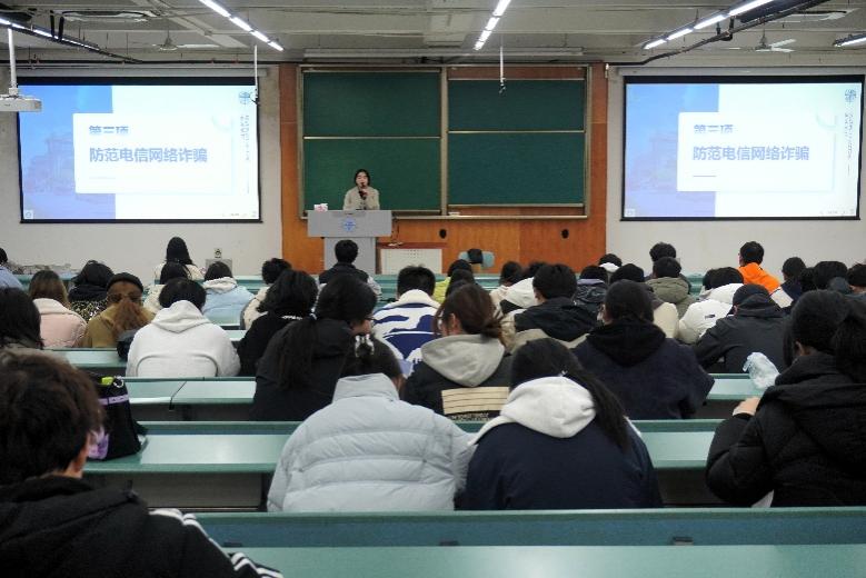 接下来,张若男向大家强调了防范电信网络诈骗和宿舍安全问题。她通过贷款诈骗、游戏账号交易诈骗等真实案例,直观揭露了电信网络诈骗的常见套路与危害,叮嘱同学们牢记“五不要” 原则。宿舍安全方面,她重点强调了用电规范,明确禁止私拉乱接电线及使用违章电器,要求同学们严格做到 “人走电断”,共同守护安全舒适的住宿环境。