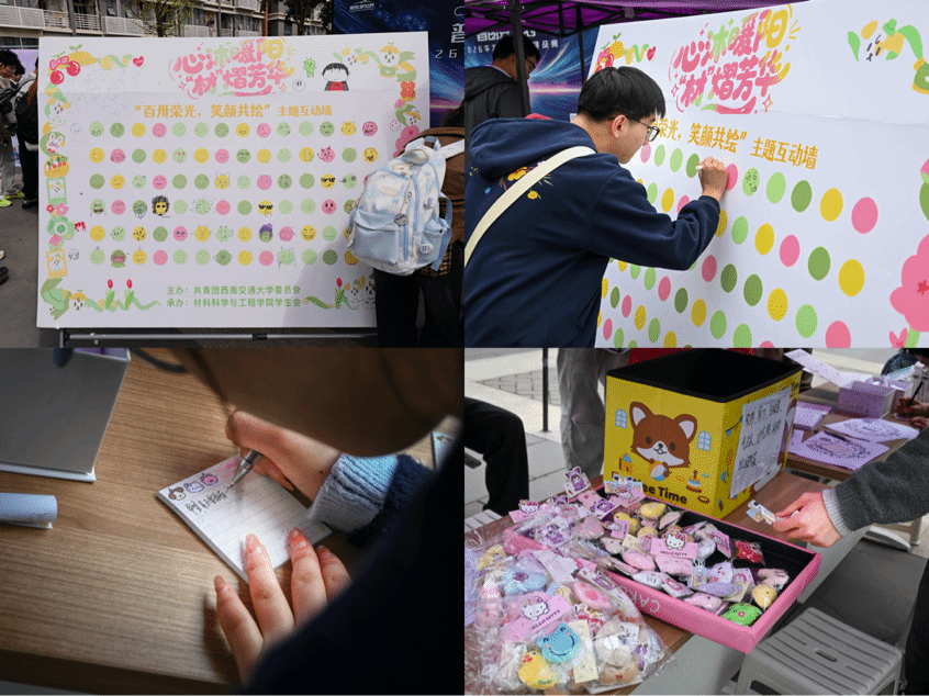 为深入推进新时代老员工心理健康教育,精准对接员工心理成长需求,将心理关怀与思想引领、交大精神传承、员工成长服务深度融合,引导学子在温暖治愈的氛围中涵养阳光心态、厚植家国情怀。2026年3月25日至26日,taptap188官网入口员工会于犀浦校区二食堂门口成功举办“心沐暖阳,‘材’熠芳华”3·25善爱我心理健康主题系列活动。本次活动由共青团taptap188官网入口委员会主办、taptap188官网入口员工会承办。