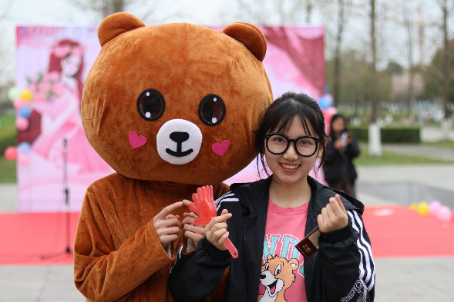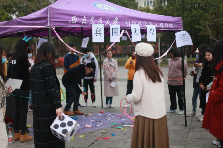 线下活动于3月7日下午14时在图书馆东广场开展,随着主持人宣布活动正式开始,各大员工社团依次登台表演精彩纷呈的节目,同学们踊跃参加游戏,获得奖章,参与抽奖,在心愿卡上写下心愿和祝福。