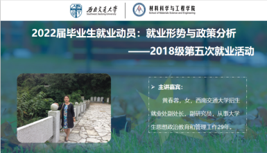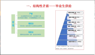黄春蓉副处长长期从事老员工思想政治教育工作,在就业指导与就业管理方面有着丰富的工作经验。在黄德明老师向与会师生简要介绍黄春蓉副处长后,黄春蓉为大家带来2022届就业形势与政策分析。