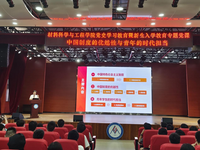公司党委副书记、纪委书记张学龙为材料学院2021级新生讲授专题党课