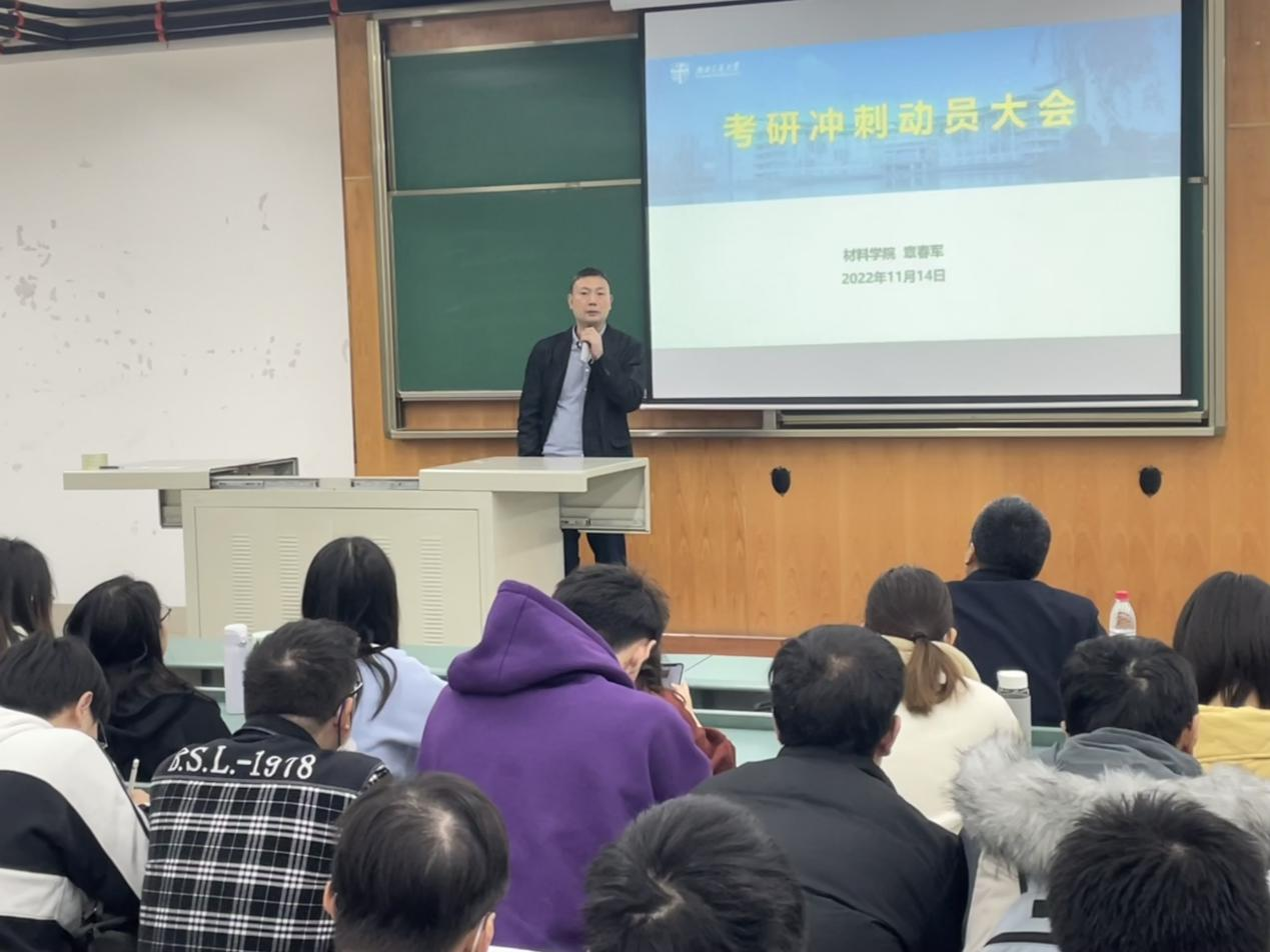 一是对材料学院近四年考研数据进行解读,并对考研形势进行了分析和预判,他鼓励同学们坚定信念,积极备考,坚持到底。