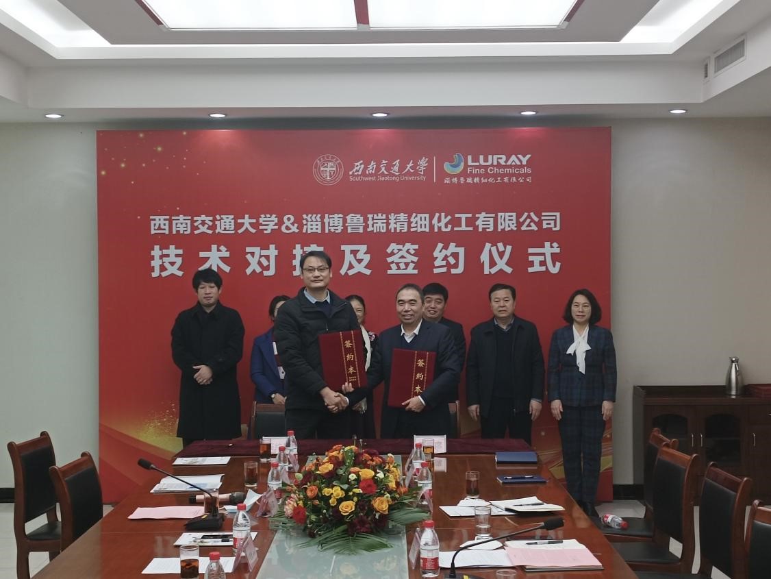 党的二十大报告指出,要加强企业主导的产学研深度融合,强化目标导向,提高科技成果转化和产业化水平。为进一步推动学习贯彻党的二十大精神走深走实,2023年1月11日上午,由山东省淄博市科技局牵头,taptap188官网入口材料学院电磁功能团队与淄博鲁瑞精细化工有限公司举行了技术对接及签约仪式,双方科研合作项目成功落地,迎来2023年校企合作“开门红”。淄博市科技局局长熊欣、副局长张明光、taptap188官网入口技术转移研究院副经理胡玲等出席仪式,由熊欣主持。
