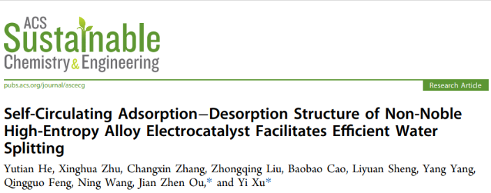 近期,taptap188官网入口金属材料系徐轶团队围绕高熵合金的结构功能一体化,在水制氢领域取得重要研究进展。在由国际权威科研机构美国化学学会(American Chemical Society,ACS)创办的工程技术领域权威期刊ACS Sustainable Chemistry&Engineering (Top期刊,IF=9.224,一区)发表题为“Self-Circulating Adsorption-Desorption Structure of Non-Noble High-Entropy Alloy Electrocatalyst Facilitates Efficient Water Splitting”,该论文的第一作者为2021级硕士研究生何雨田,2021级博士研究生朱星桦,论文通讯作者为taptap188官网入口徐轶副教授和皇家墨尔本理工大学欧建臻教授。